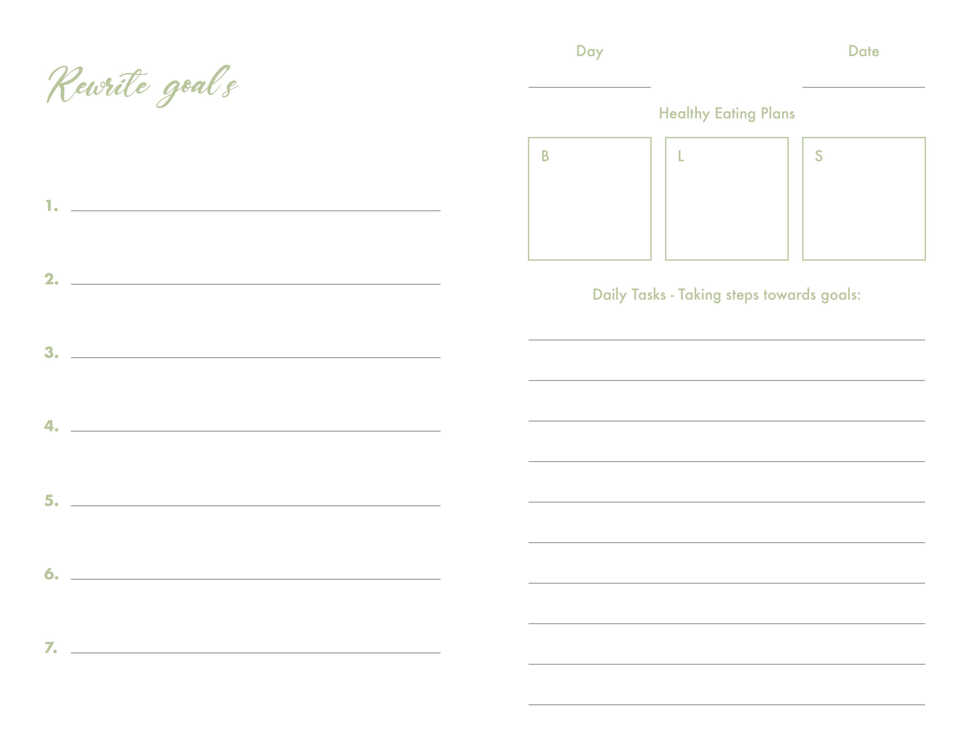This was achieved through different sections in the layouts, such as: Goal-setting pages, daily meal planners, and Weekly reflections.