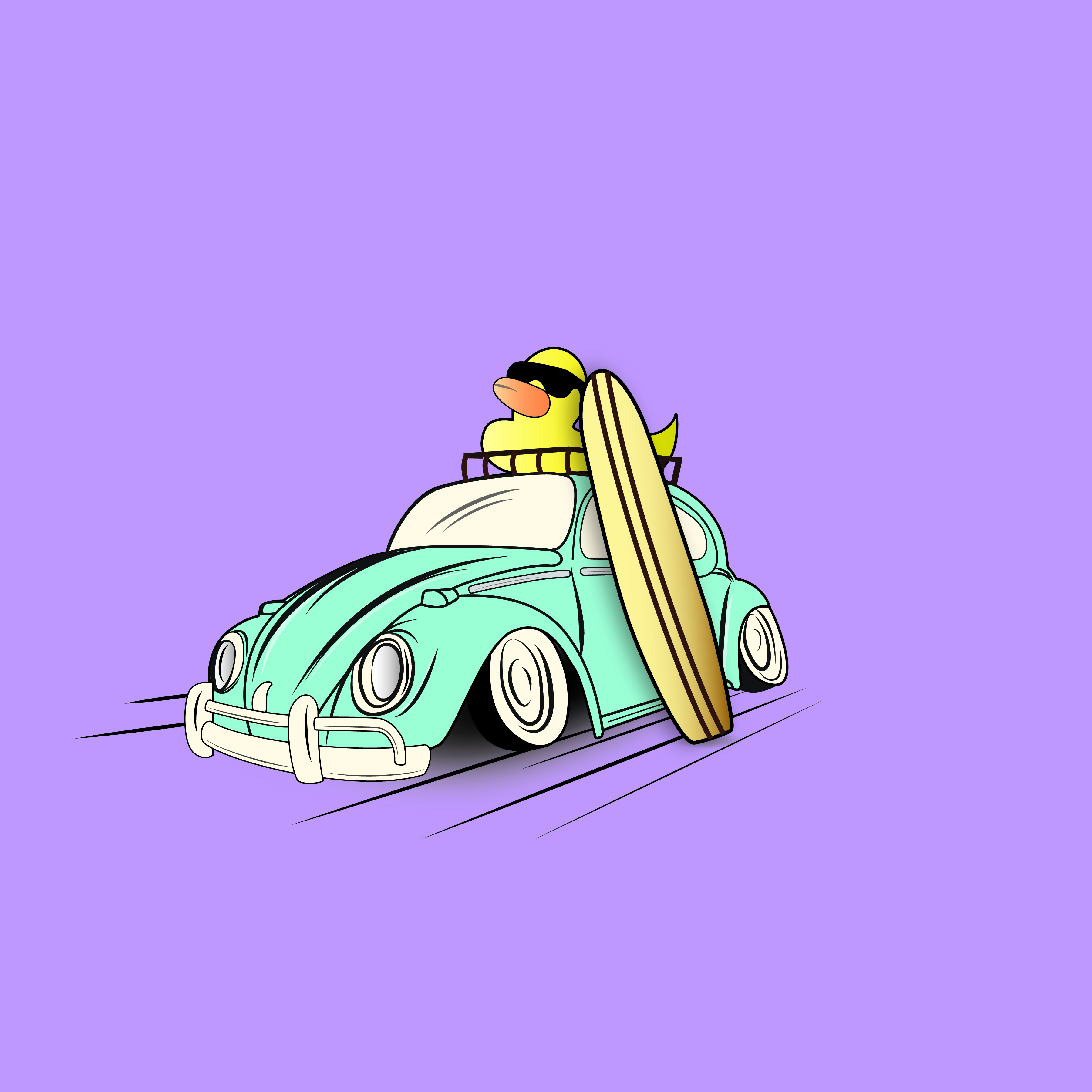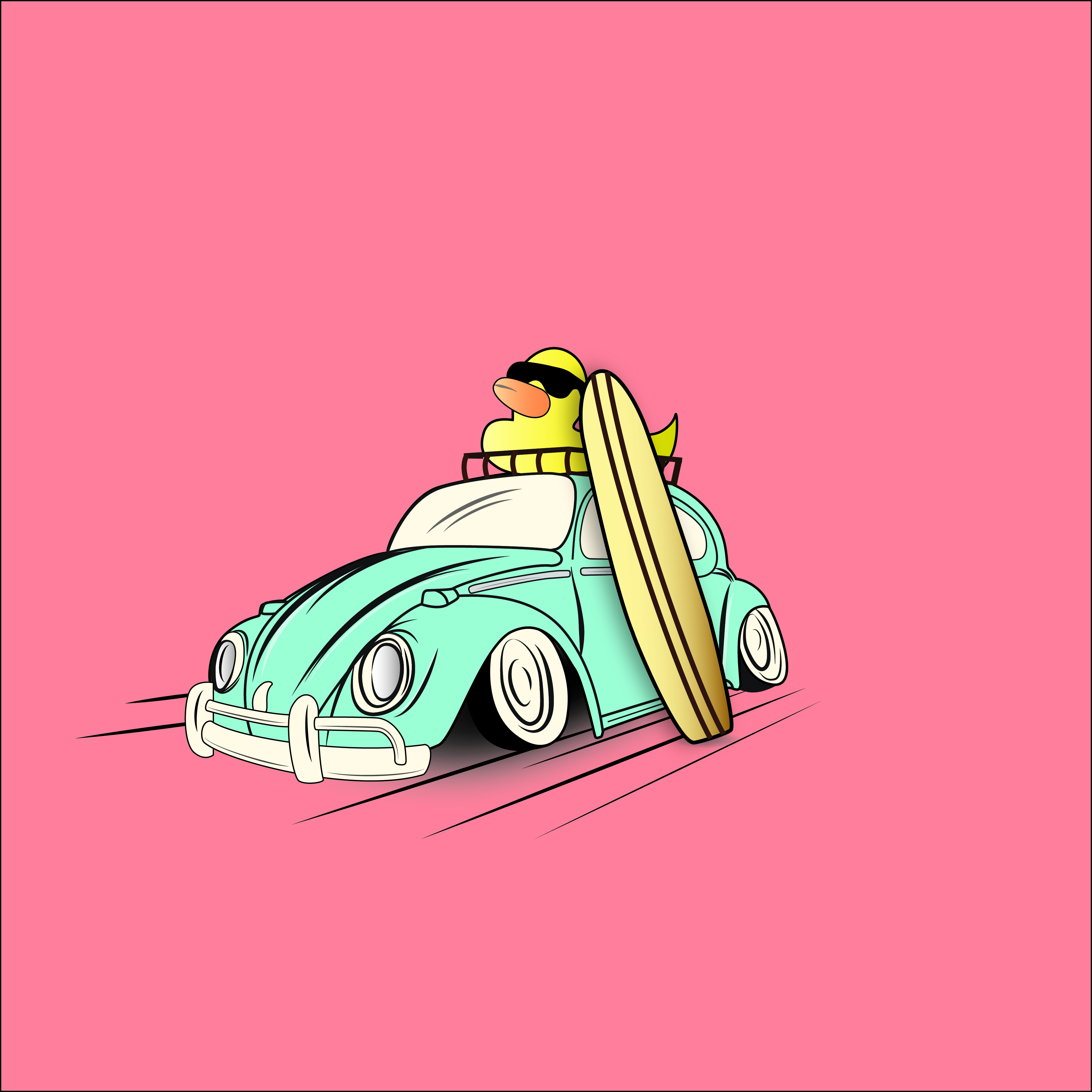 The logo for this car-themed Instagram account in a coastal beach town is a fun, playful and energetic design that perfectly captures the excitement and passion of car enthusiasts. The main focus of the logo is an iconic VW bug, a surfboard for the beach theme, and a sunglasses wearing rubber duck.